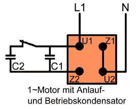Einphasen- Kondensatormotoren mit Anlauf-, und Betriebskondensator: